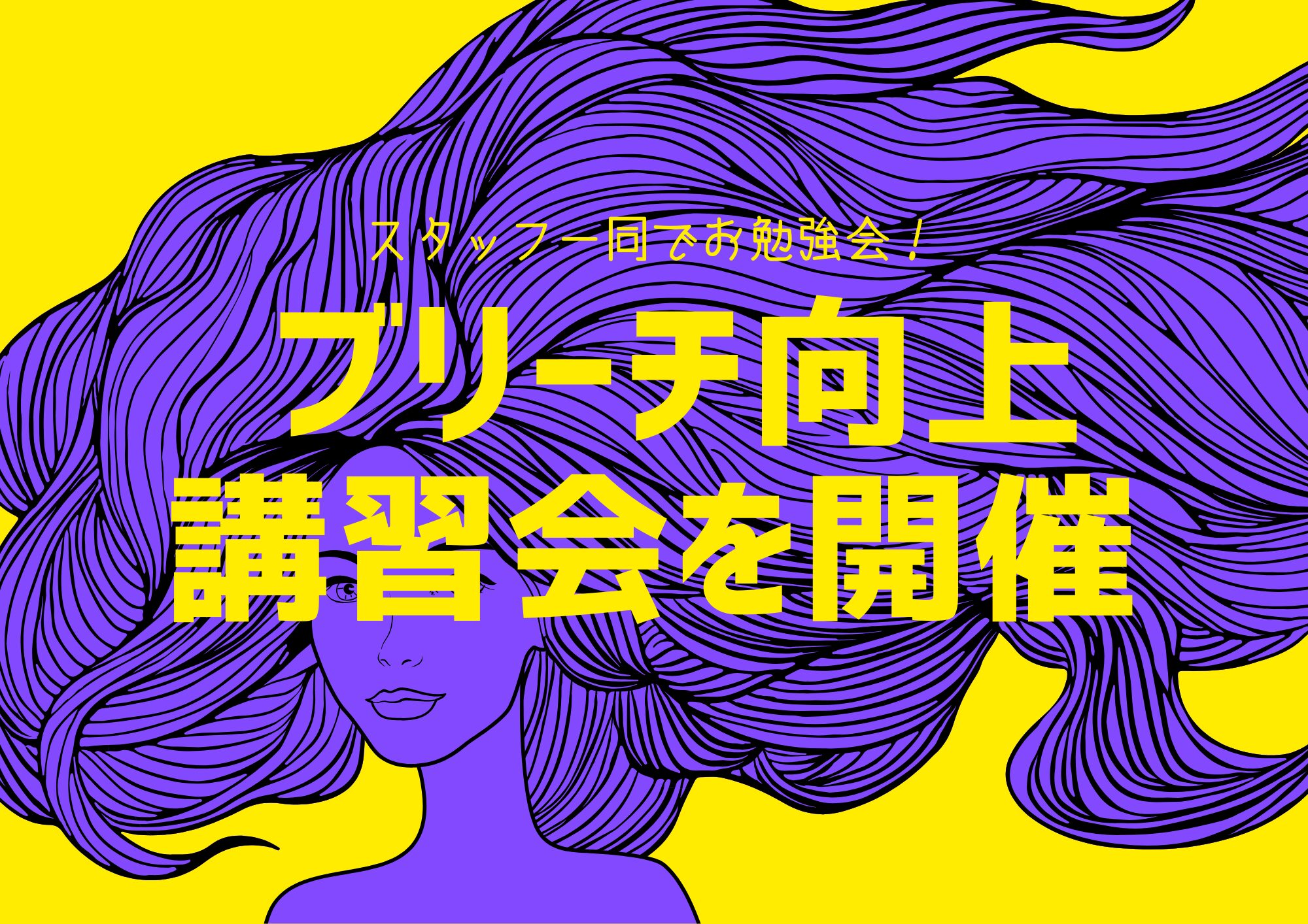 先日、内田先生主催(ミルボン様監修)の講習会が開催、ブリーチリタッチ(根元染め)の技術を両店舗で学びました!